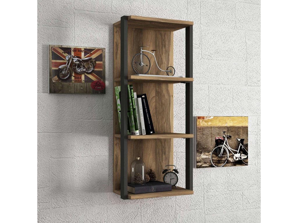 Nástenná polica LUST je vyrobená z kvalitných materiálov LTD a kovu s hrúbkou 18 mm, čo zaisťuje jej dlhú životnosť a stabilitu. Jej obdĺžnikový tvar a elegantný dizajn vo farbe orecha sa perfektne hodí do akéhokoľvek interiéru, pričom dodáva moderný a industriálny nádych. Táto polica je ideálna na vystavenie vašich obľúbených predmetov a organizácii priestoru v obývacej izbe alebo spálni.