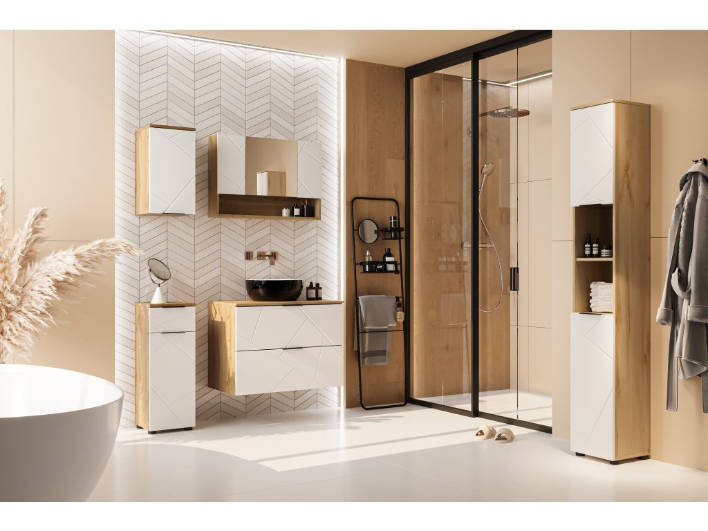 Závesná skrinka do kúpeľne MANDOLA 71, dub Wotan / biela