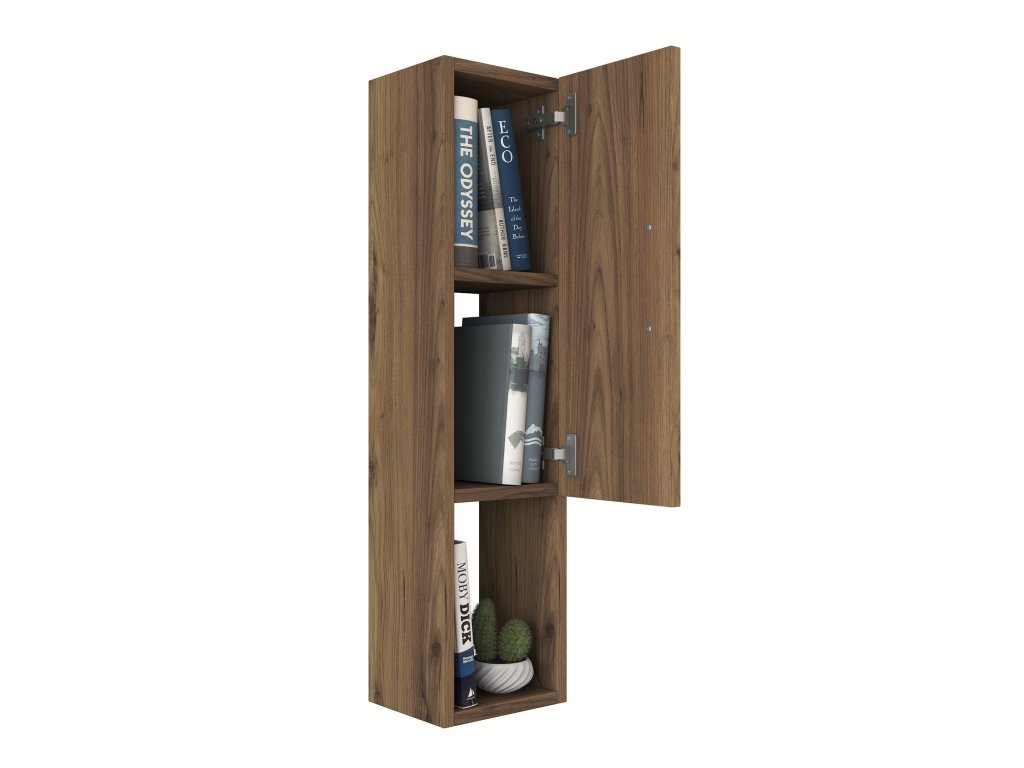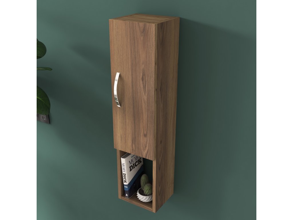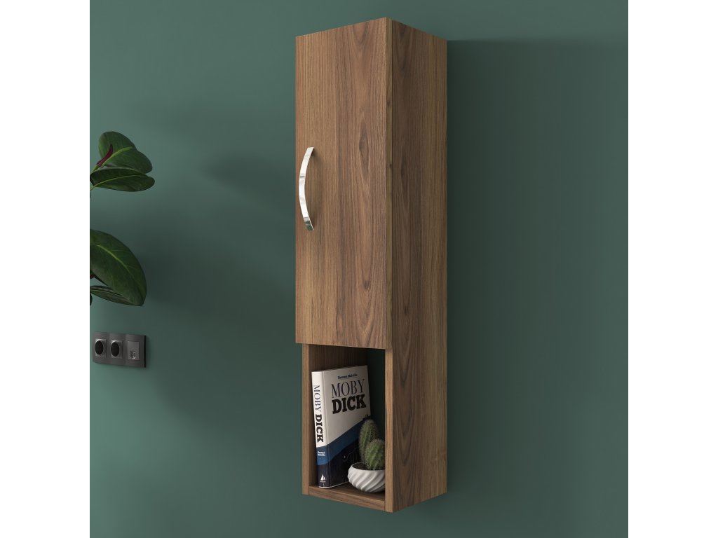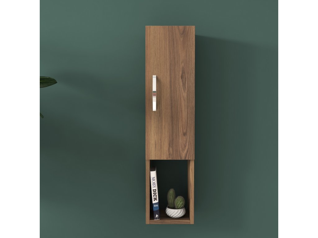 Závesná skrinka TURK je ideálnym doplnkom pre modernú obývaciu izbu. Vďaka svojmu úzkemu dizajnu a elegantnému dekoru orecha pridáva priestoru štýl a praktickosť. Plné dvierka poskytujú diskrétny úložný priestor pre vaše veci a umožňujú udržať interiér čistý a organizovaný.