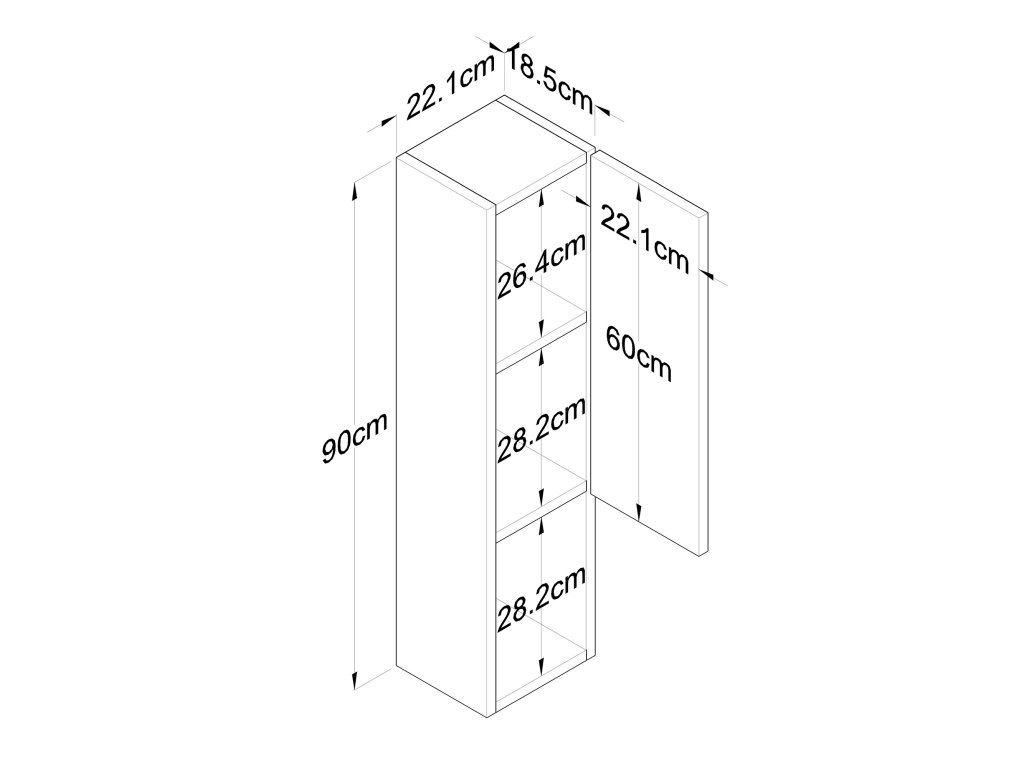 - Rozmery: 90 x 22,1 x 18,5 cm – úzky a kompaktný dizajn vhodný pre rôzne typy miestností.