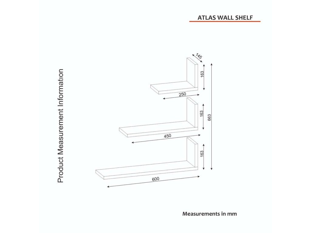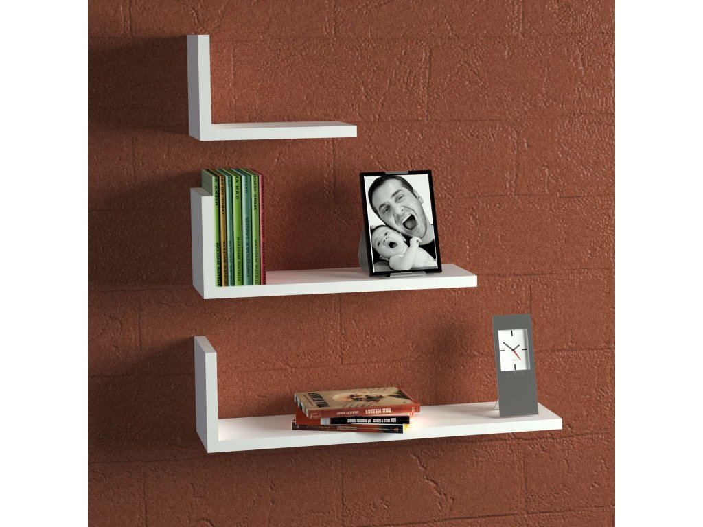 - Zostava obsahuje: 3x nástenná polica – veľká š60 x v16.3 x h14.5 cm, stredná š45 x v16.3 x h14.5 cm, malá š25 x v16.3 x h14.5 cm