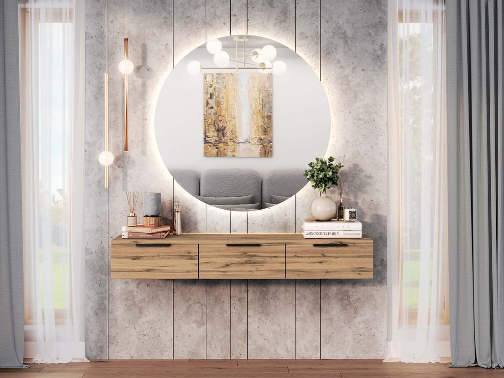 Závesný konzolový stolík DUBLIN 2 je elegantným a praktickým doplnkom moderných interiérov. Vďaka závesnému prevedeniu pôsobí ľahko a vzdušne a zároveň pomáha udržať priestor prehľadný a uprataný.