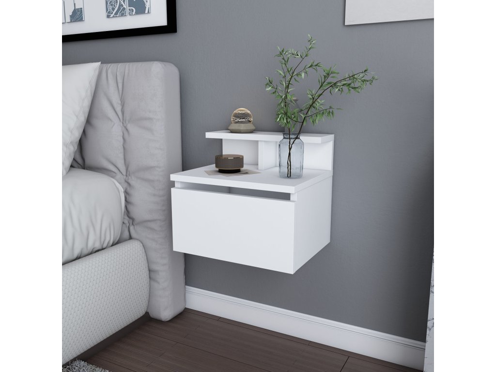 Závesný nočný stolík PRINC, biela