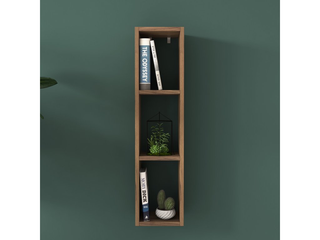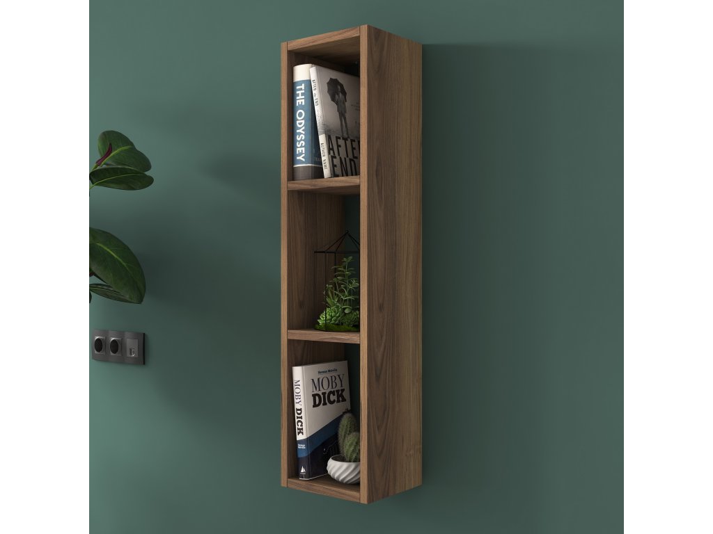 Závesná knižnica WALLET je praktickým a štýlovým doplnkom, ktorý dodá vašej obývačke nádych elegancie. S kompaktnými rozmermi a moderným prevedením v orechovom dekore ponúka ideálne miesto na uloženie kníh, dekorácií alebo drobností.