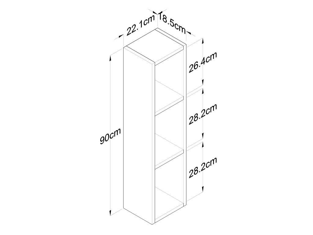 - Rozmery: 90 x 22,1 x 18,5 cm – kompaktný dizajn, ktorý šetrí priestor.