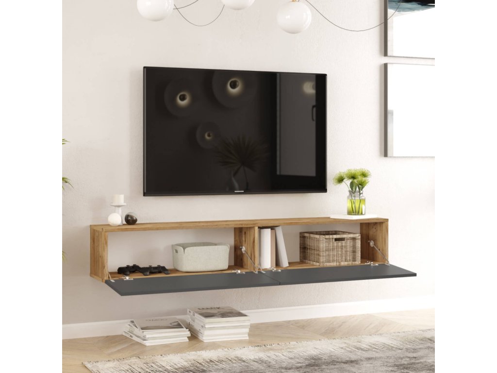 Závesný TV stolík FREY 8, farba borovice + antracit