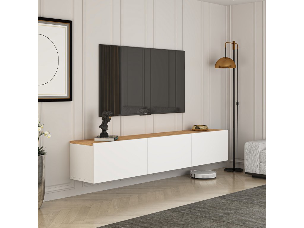 Závesný TV stolík RANK, biela / borovica Atlantik
