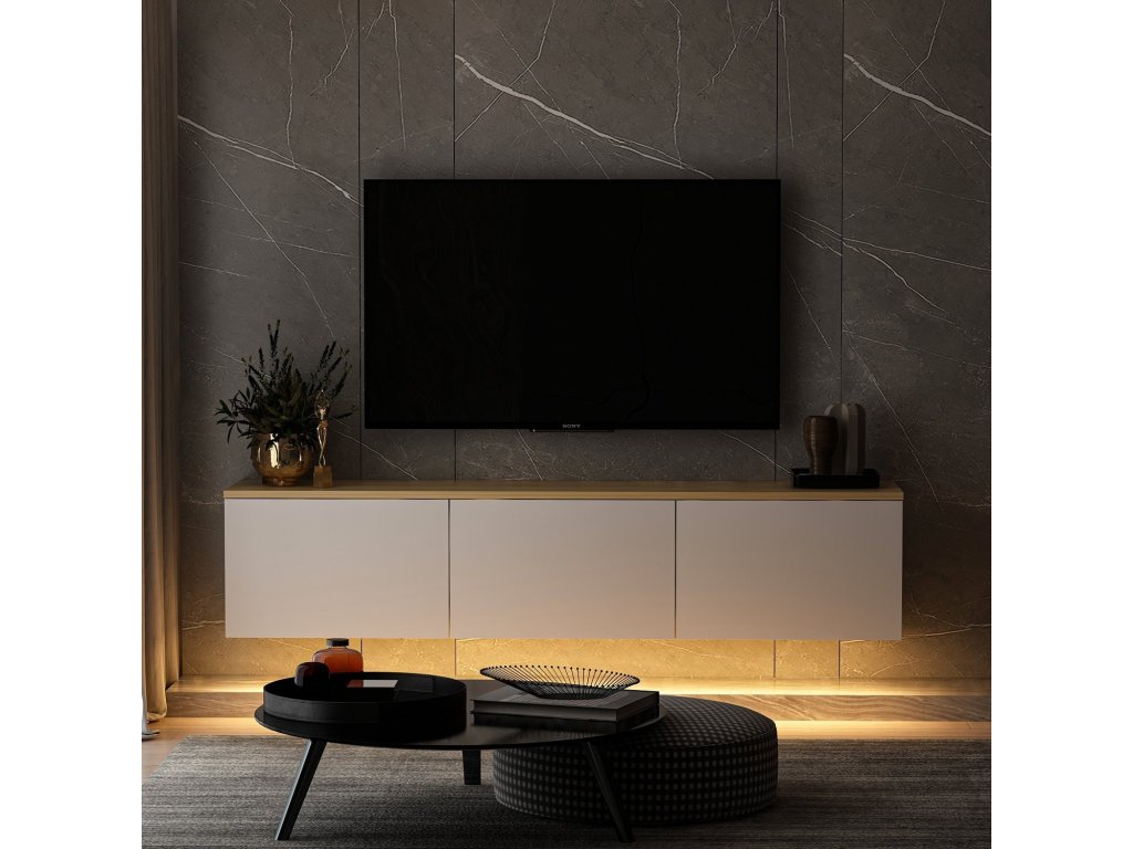 Pre dodanie nádychu sofistikovanosti sú súčasťou tohto televízneho stolíka LED svetlá. Vytvorte si vo svojej obývačke útulnú a príjemnú atmosféru s jemným svetlom týchto svetiel.