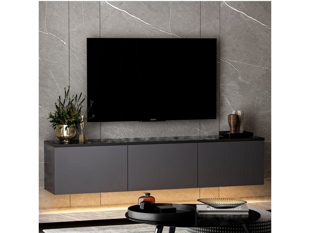 Závesný TV stolík SIMA, antracit / čierny mramor