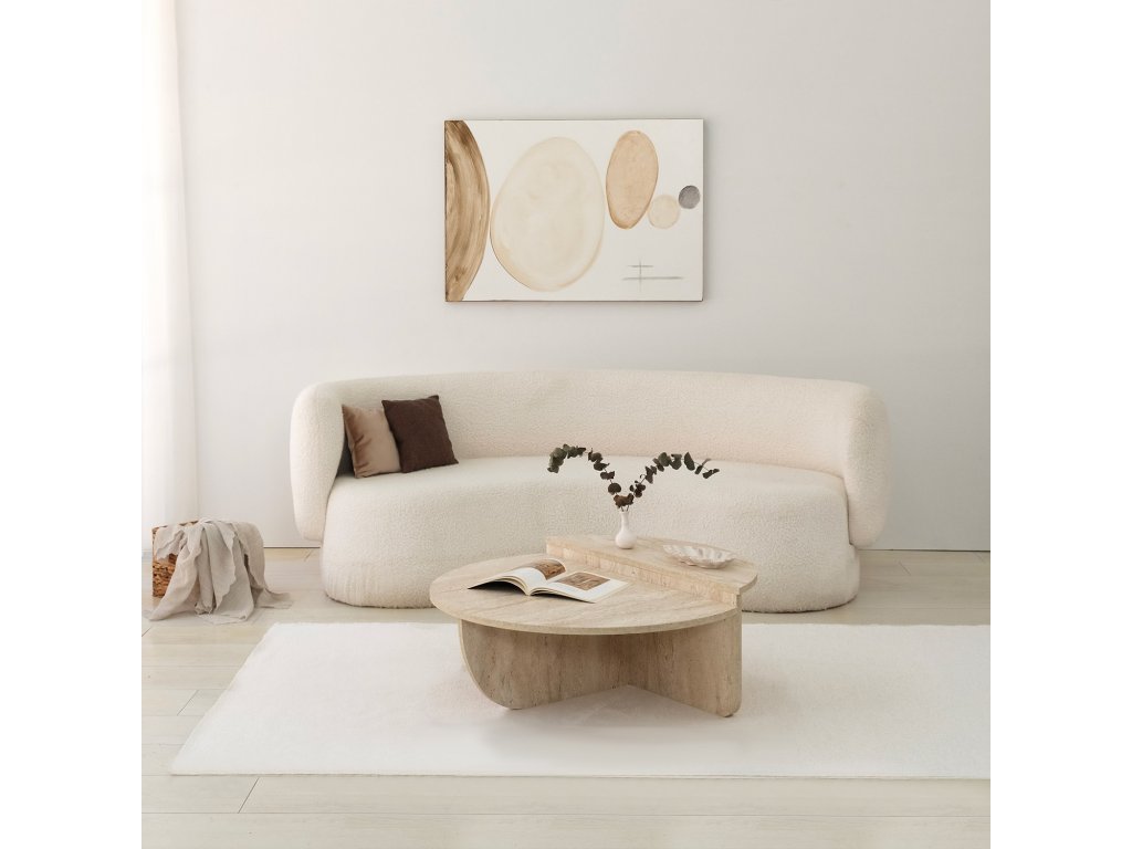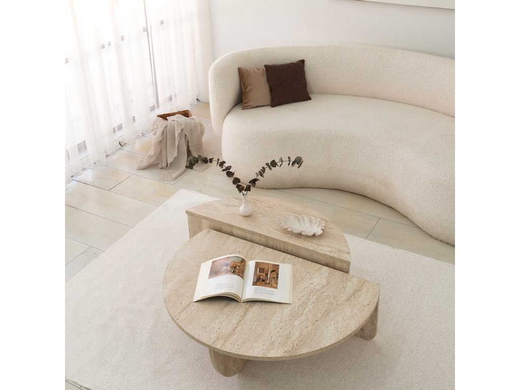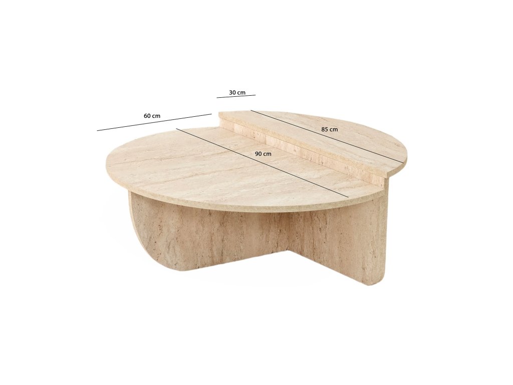Stolík STEWIE je navrhnutý s ohľadom na praktickosť a moderný štýl. Jeho zložiteľný dizajn umožňuje ľahké skladovanie a flexibilné použitie, čo oceníte v menších aj väčších priestoroch. Atypický tvar a povrch v dekore travertín dodávajú interiéru jedinečný a elegantný vzhľad.